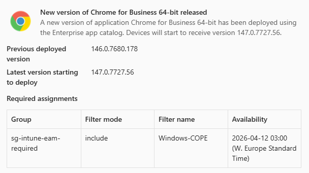 EAM-AutoUpdater is a PowerShell-based automation tool for Microsoft Intune Enterprise Application Management (EAM) that detects available updates in the EAM catalog and automatically deploys new app versions. It migrates assignments, metadata, and Enrollment Status Page (ESP) configurations to the new version, handles supersedence by keeping only the latest two versions, and supports update rings, custom command-line parameters, app exclusions, and Teams notifications; it runs as an Azure Automation runbook with a managed identity or interactively for testing.