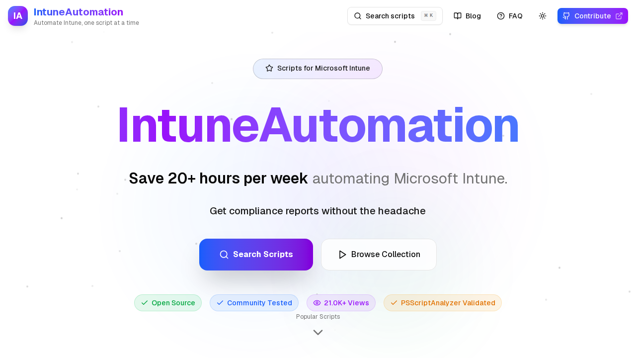 A collection of community-tested PowerShell scripts for automating Microsoft Intune management tasks. Features device lifecycle management, compliance reporting, application deployment automation, and threat detection workflows. Scripts support both local execution and Azure Automation Runbook deployment with automatic environment detection for authentication. Uses direct Graph API access for minimal dependencies and easier troubleshooting.