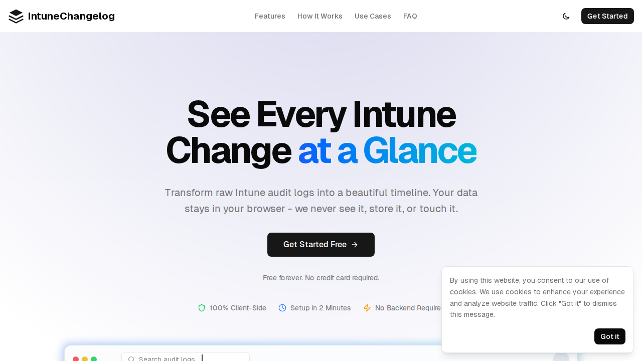 A web-based tool for visualizing and tracking Microsoft Intune configuration changes. Displays audit logs in a beautiful, interactive timeline interface for easy monitoring of system modifications. Features a privacy-first approach with all data processing happening client-side in your browser without server transmission.