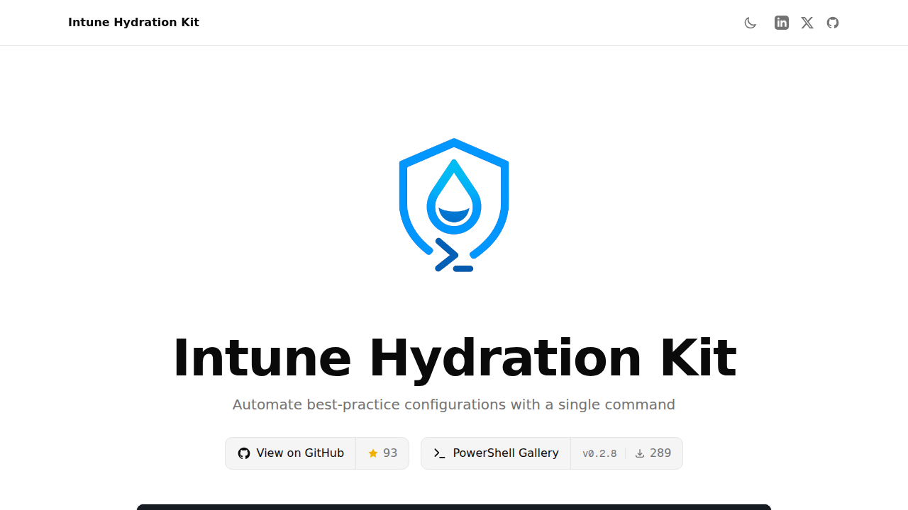 A PowerShell module that automates Microsoft Intune tenant setup by deploying 70+ security baselines, 43 dynamic groups, 24 device filters, compliance policies, app protection policies, and Conditional Access policies in a single command. Integrates OpenIntuneBaseline and supports multi-cloud environments.