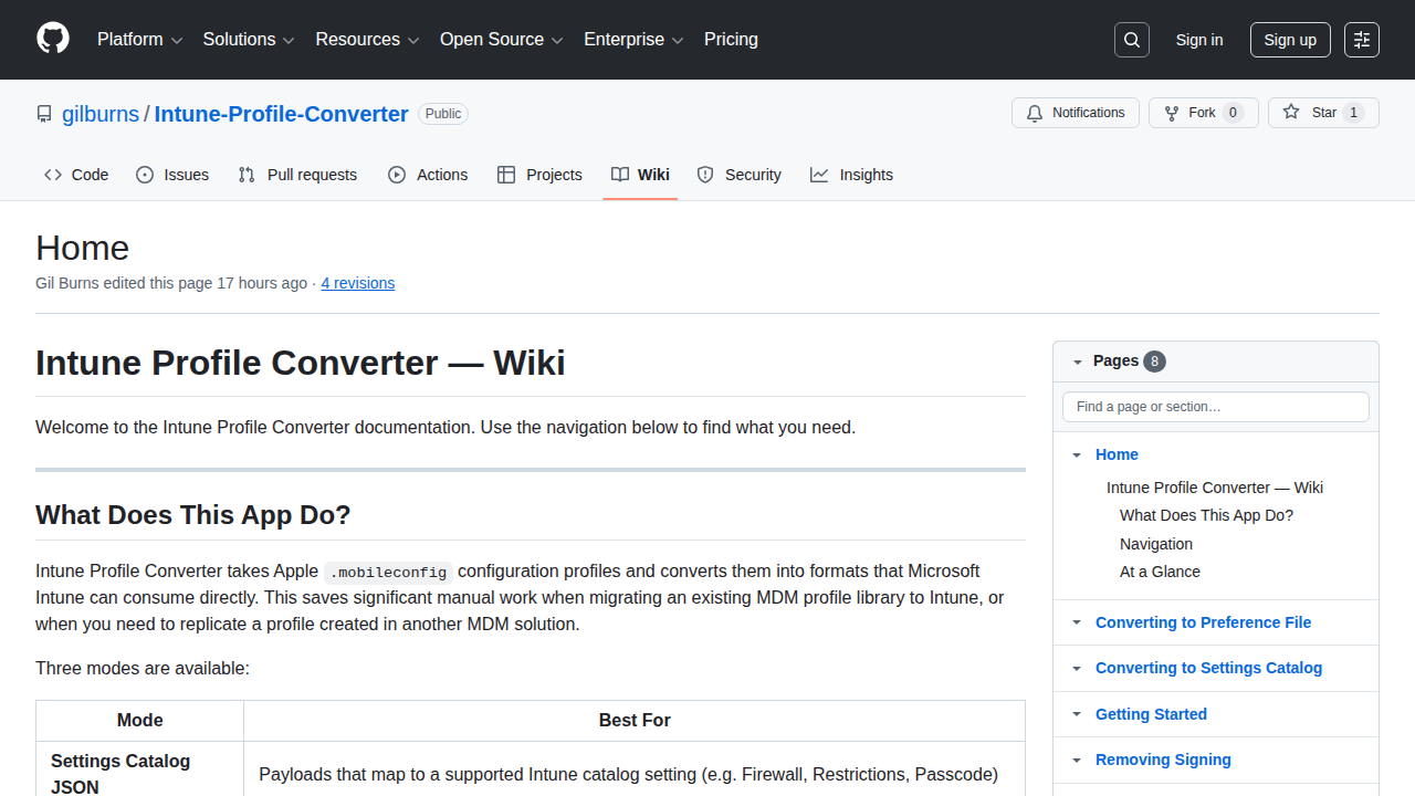 Intune Profile Converter is a native macOS app that transforms Apple .mobileconfig profiles into Microsoft Intune-compatible formats. It supports Settings Catalog JSON and Preference File XML, automatically strips CMS/PKCS#7 signatures, and can batch process multiple profiles. It also handles MCX managed preferences, provides a session log with per-file results, and includes a built-in Settings Catalog reference browser with auto-updates via Sparkle.