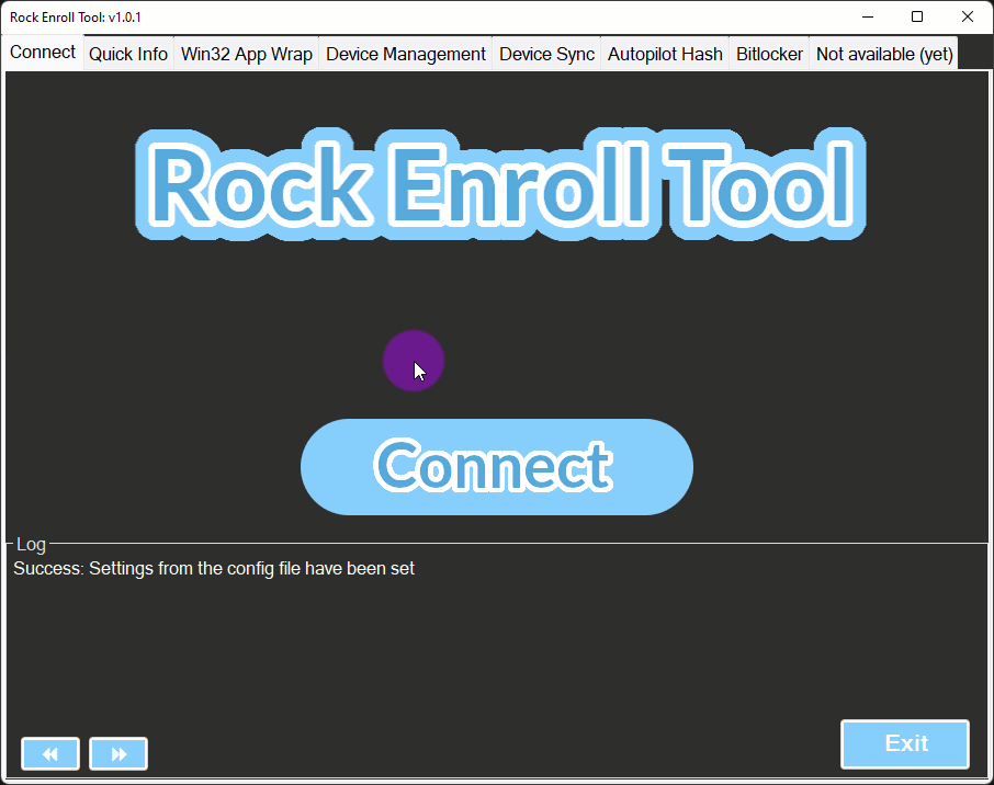 A Windows GUI tool for device enrollment and Intune management. Features modules for authentication, system info, Win32 app wrapping, device management, device sync, Autopilot hash generation, and BitLocker configuration through a tabbed interface.